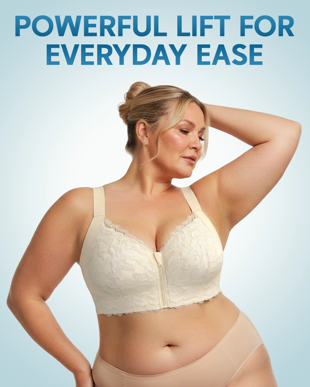Forget the constant readjusting. ZipLacy provides serious lift and stability through a combination of wide adjustable straps, high wings, a thick wire-free underband that stays put, and deep laminated cups for structured shaping. It’s the reliable support you need to move through your day with total confidence, minus the pinch.
